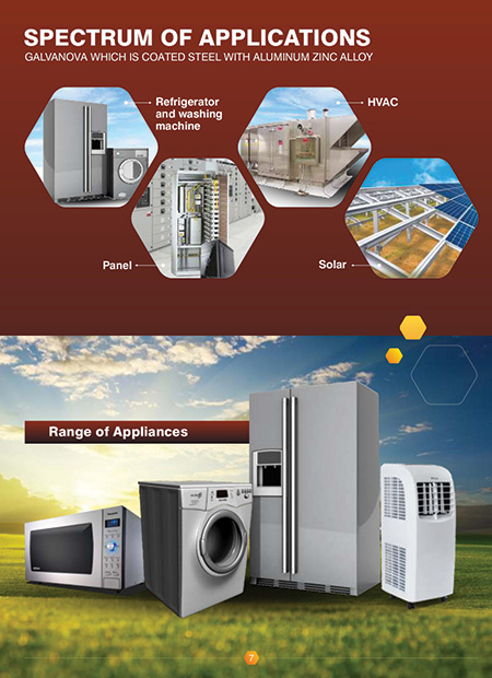 "Galvano" is Galvanized plain (GP) steel with zero spangles. Galvano offers commitment to deliver high performance to meet diverse and stringent needs of various industries and segments with unmatched surface finish and mechanical properties. The offering is available in sheet and coil forms including customised requirements.