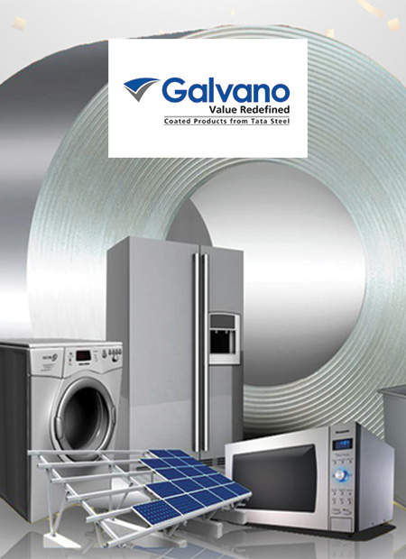 "Galvano" is Galvanized plain (GP) steel with zero spangles. Galvano offers commitment to deliver high performance to meet diverse and stringent needs of various industries and segments with unmatched surface finish and mechanical properties. The offering is available in sheet and coil forms including customised requirements.